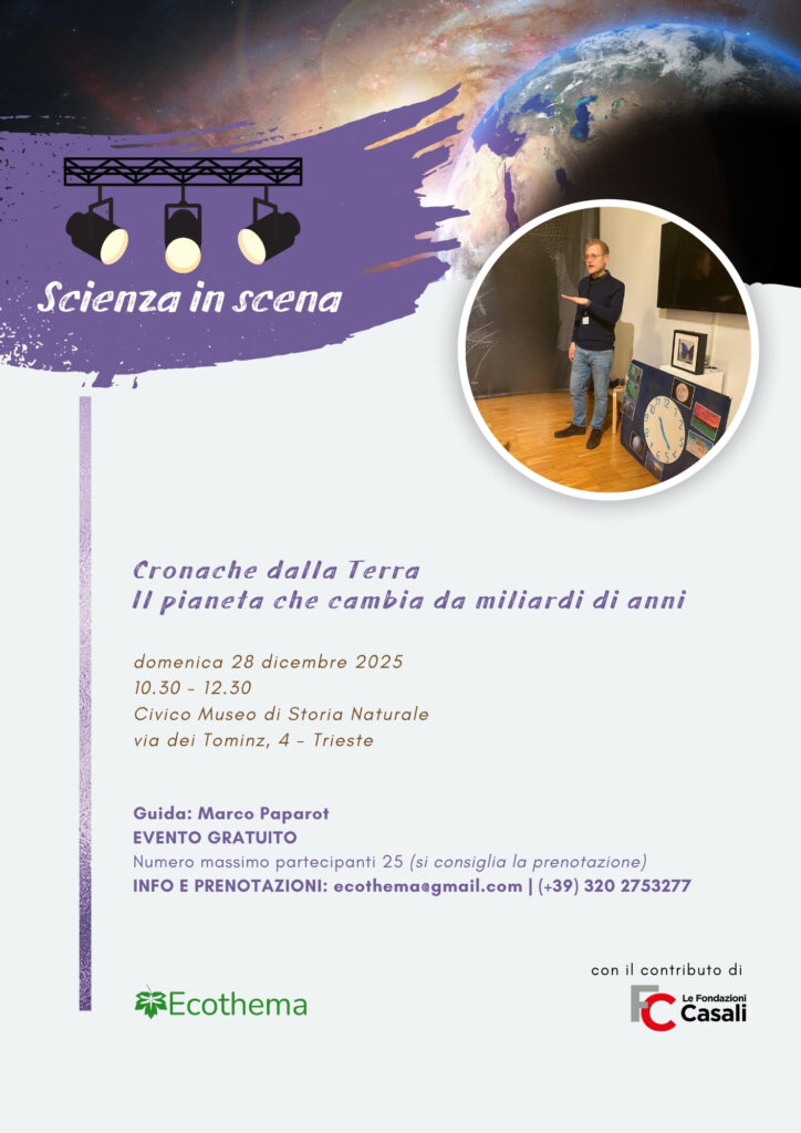 Nota: L’evento Viaggio dei naturalisti intorno al mondo si inserisce all’interno del progetto F.L.O.R.A. – Fantasia nei Laboratori e negli Orti per il Rispetto dell’Ambiente – curato da Ecothema soc. coop. soc. – che, avviato a ottobre 2024 e finanziato dalla Regione Friuli-Venezia Giulia (Avviso Divulgazione Scientifica approvato con DGR 1673/2023, per l’annualità 2024), prevede anche attività che promuovano la conoscenza e la consapevolezza ambientale nell’educazione dei giovani e nella comunità in generale.